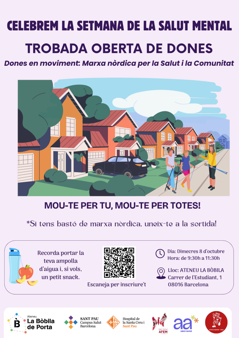 Trobada oberta dedicada a les dones, organitzada per l'SRC Dr. Pi i Molist i el Grup de dones de l'associació AFEM Nou Barris amb la col·laboració de l'Ateneu la Bòbila i la Secció Gimnàstica Rítmica AE Nou Barris. Es realitzarà una breu dinàmica per coneixèr-nos i una sortida de marxa nòrdica per la zona de Nou Barris.